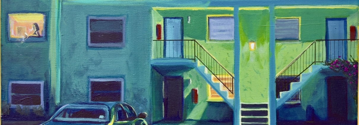 By isolating and recontextualizing these spaces, I explore the tension between familiarity and estrangement. Each painting becomes a reflection on memory, place, and the subtle architecture of everyday life. In celebrating what is often dismissed as ordinary, the work encourages a reconsideration of the American vernacular and reveals the aesthetic value embedded in its most unassuming forms.